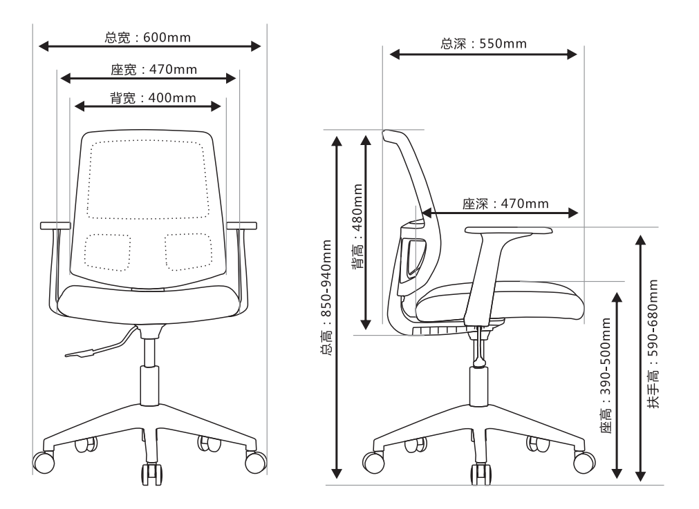 600L*550W*850-940H