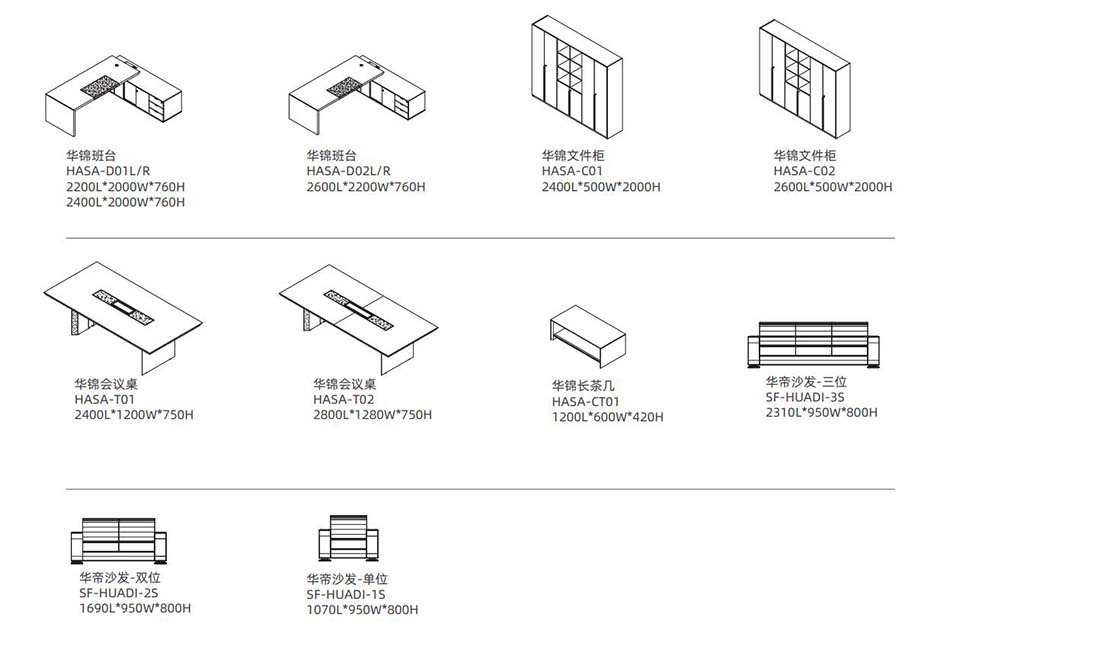 會議桌基礎造型與班臺類似,中部試用鐵灰色木皮材質,帶一個雙面翻蓋線盒